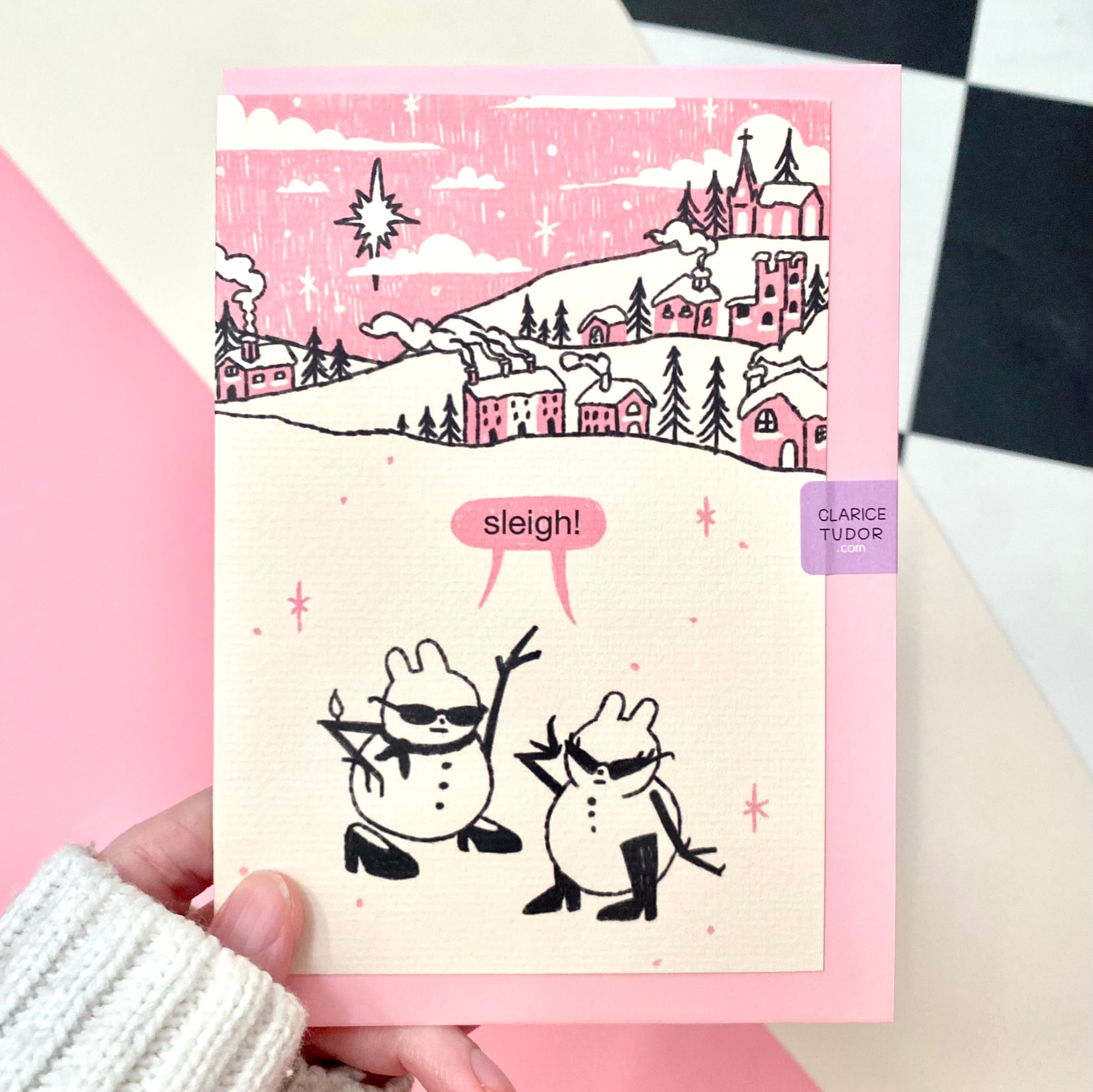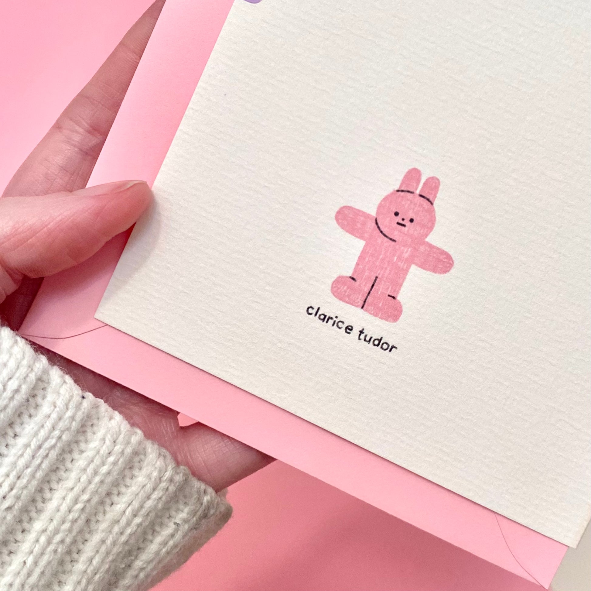Heavyweight, high-quality A6 greetings card on 350gsm recycled card with a pink envelope.